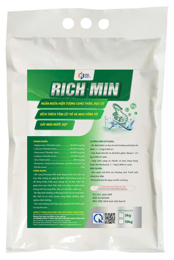 - Bổ sung khoáng chất dưới dạng muối hòa tan nên tôm dễ dàng hấp thu qua mang, vỏ, cơ thịt; giúp tôm mau chắc thịt, chắc cơ, cứng vỏ.