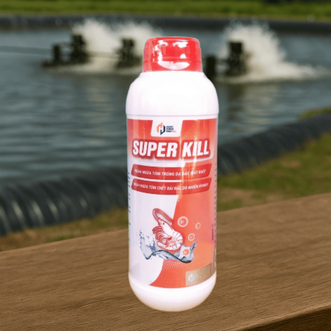 + Tôm nhiễm khuẩn gây trống ruột: tăng gấp đôi liều trộn cho ăn kết hợp tạt 1-2 lít Super Kill/1.000 m3 nước ao nuôi, sử dụng 2-3 ngày liên tục.